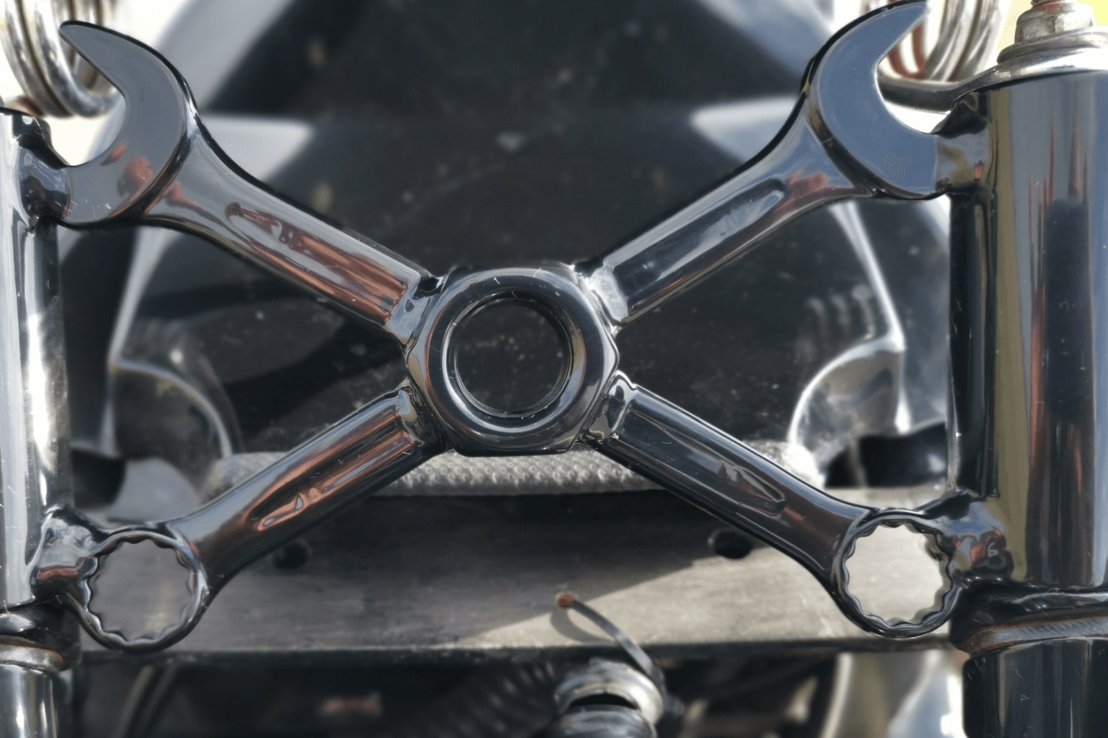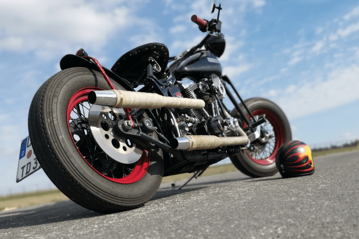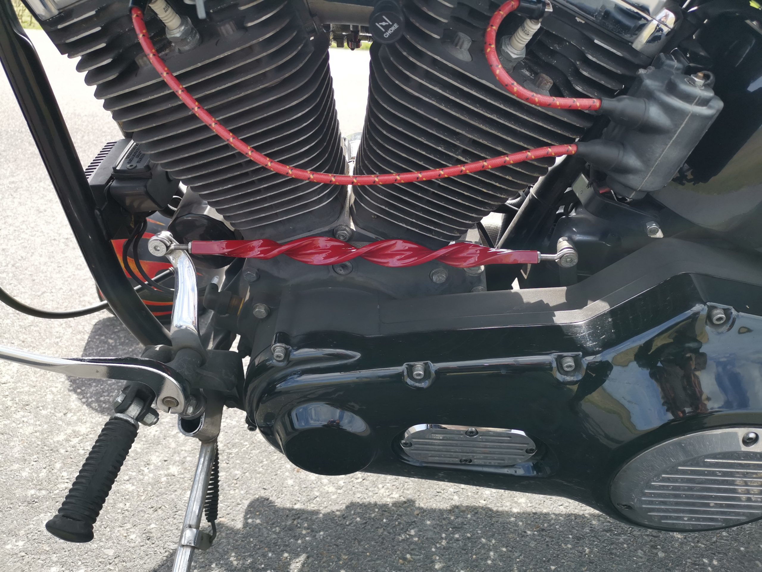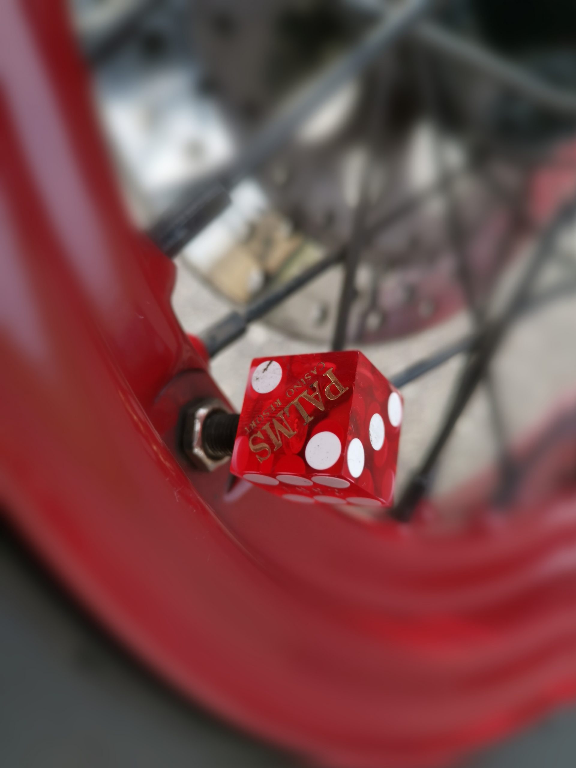 Besonderheiten: Eigenbauheck aus Stahl, Eigenbausattelstütze, Eigenbaukickerpedal Alu,Eigenbau Schaltgestänge, Eigenbau Tankembleme, Minitrittbretter, 2 Kolben Stroker Bremssattel vorne, LED-Microblinker, seitlicher Kennzeichenhalter, LasVegas Spielwürfel als Ventilkappen, Ölstopfen HD-California, LED-Oldschool Rücklicht,Vintage Zündkabel,WLA-Style Tacho